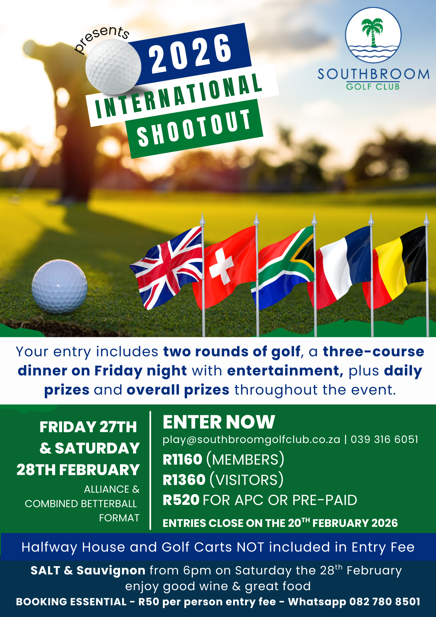 π Book now by emailing play@southbroomgolfclub.co.za or calling the Pro Shop on 0393166051